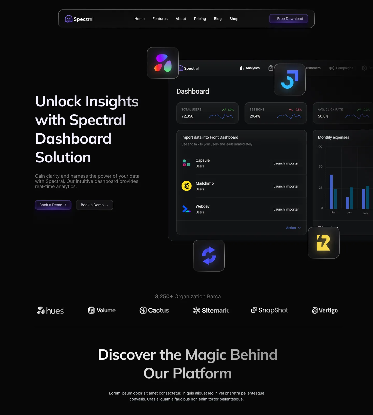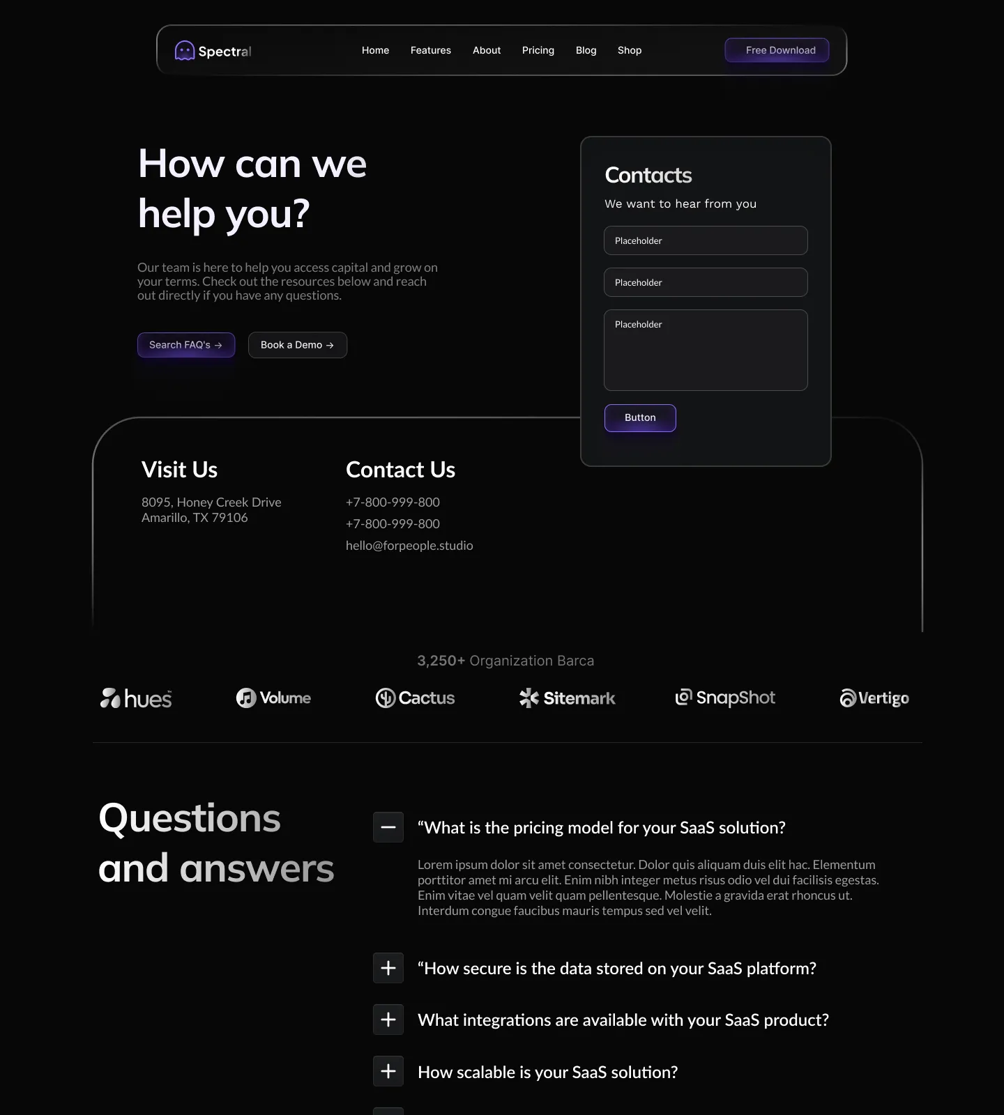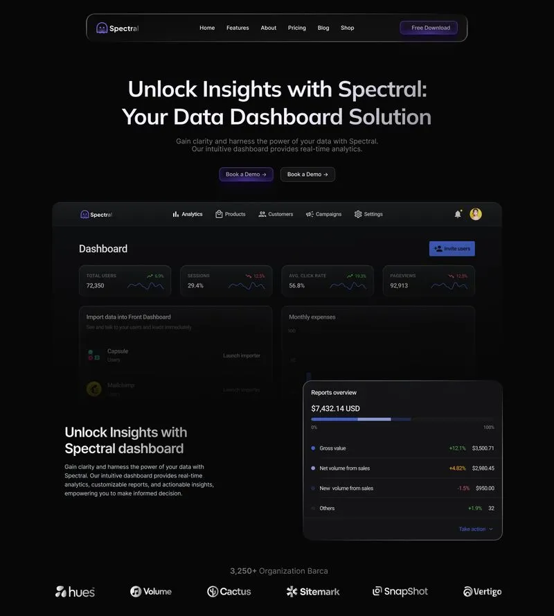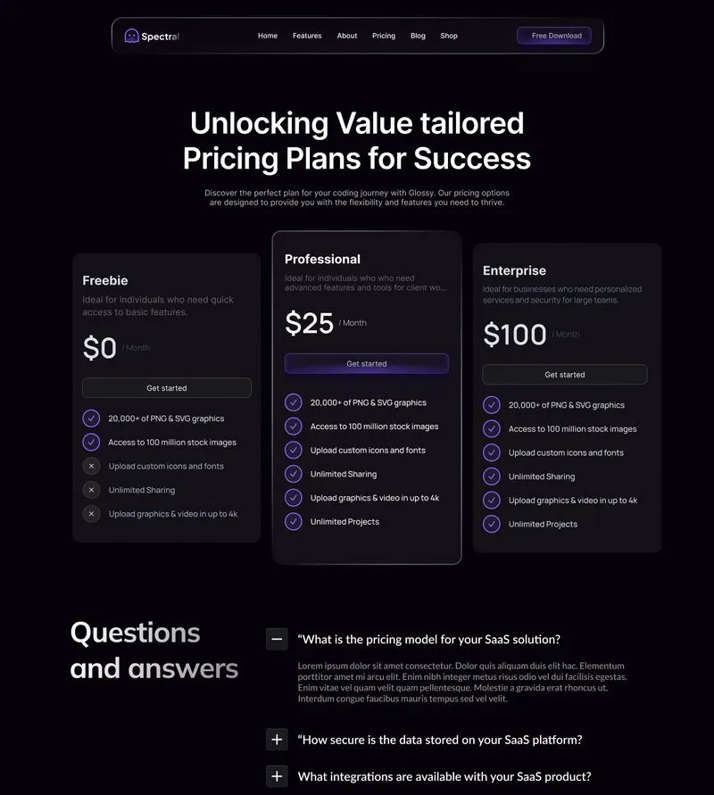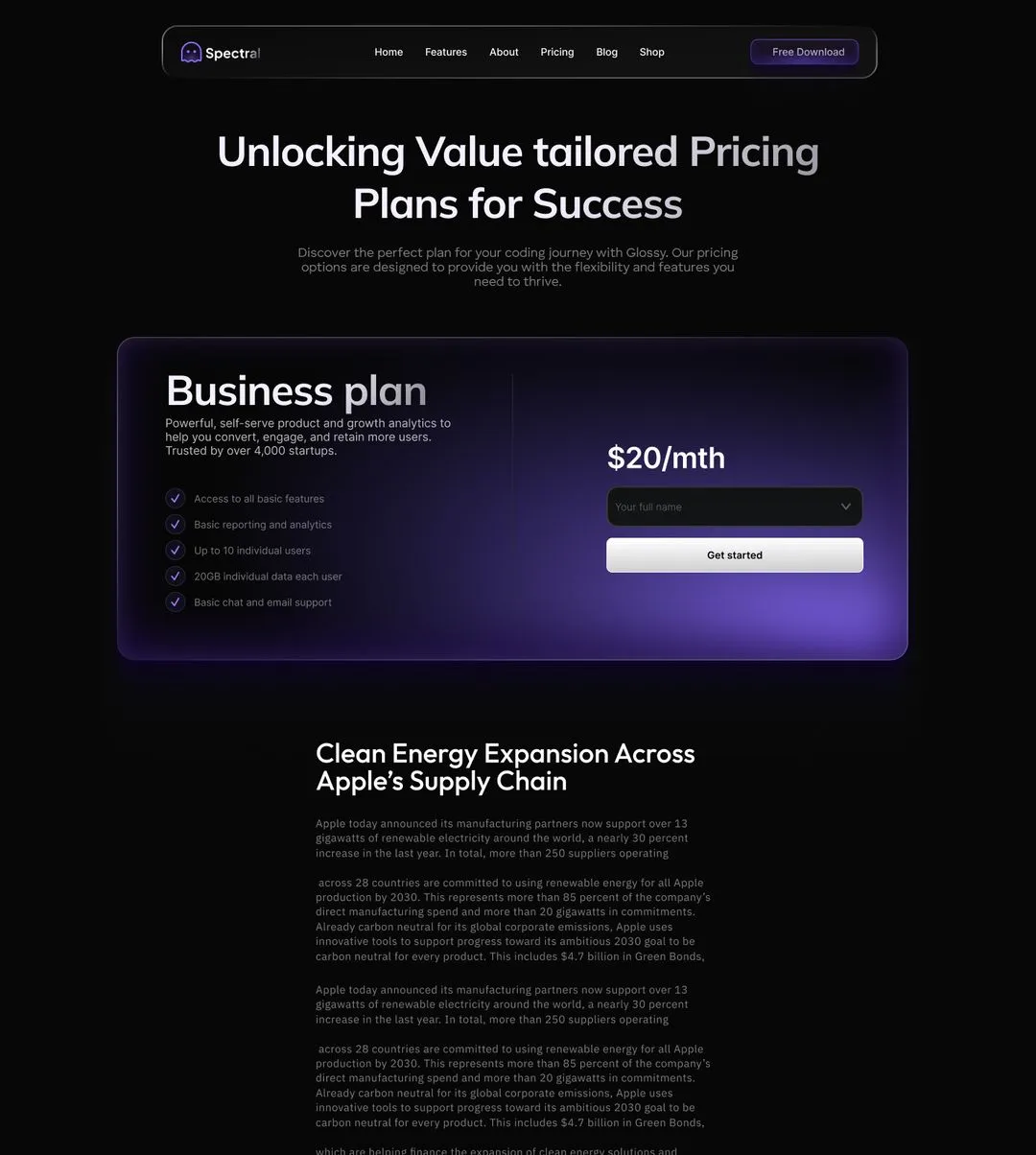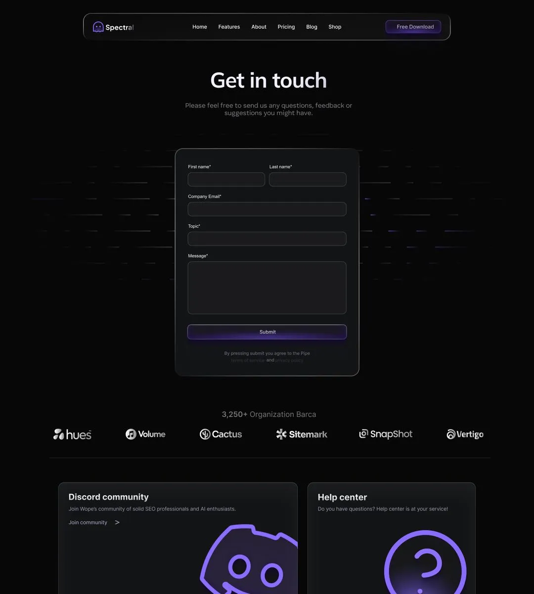 The Spectral Webflow Template offers 28 pages, 38 sections, and 3 variations for home, blog, and contact pages.